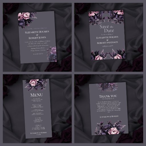 Announce your wedding in elegant Gothic romance with this Gothic Plum Floral Save the Date card. Featuring deep plum and mauve roses on a soft charcoal gray background, this design blends dark floral beauty with timeless sophistication. The refined typography and symmetrical floral framing create a dramatic yet romantic first impression for your special day. Fully customizable text allows you to personalize names, date, and wording with ease. Perfect for gothic, moody, celestial, or enchanted garden weddings. A stunning introduction to a coordinated dark floral wedding stationery suite.