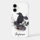 Set the tone for a mysterious dark academia vibe with this personalized phone case. This moody design features a detailed black raven perched among vintage-style purple roses and botanical sprigs rendered in a muted plum and charcoal palette. It is the perfect way to elevate a daily accessory or a thoughtful gift for an edgy teen girl.
