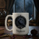 Set the tone for a moody morning ritual with this personalised ceramic coffee mug. This striking design features a detailed black raven perched within an ornate Victorian frame, rendered in a sophisticated charcoal and ink palette. It is the perfect way to celebrate a special occasion or a thoughtful gift for a literature and nature enthusiast.