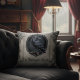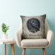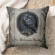 Set the tone for a moody Victorian aesthetic with this personalised family pillow. This striking design features a detailed black crow perched within an ornate filigree frame, rendered in a sophisticated charcoal and stone grey palette. It is the perfect way to elevate a gothic-themed living space or a unique gift for a spooky home decorator.