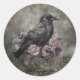 This striking gothic raven artwork features a darkly elegant black bird perched among soft vintage roses against a cracked stone backdrop. Perfect for lovers of moody, mysterious, and romantic aesthetics, this round sticker adds a touch of dark elegance to journals, laptops, and stationery.
