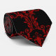 A dramatic wedding neck tie featuring a gothic red Acanthus leaf pattern against a solid black background. Makes an excellent groom and groomsmen wedding neck tie.