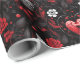 Red and black patterns with roses, hearts, skulls and little hints of grey metal on them.