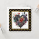 Gothic Red Rose and Heart Greetings Card Notecard in a gold frame on a gold and black background.