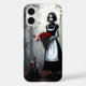 +AI ART+ Gothic robot girl with red flowers and her glitched kitty standing in a forest. Are you her true love? She's waiting for you.