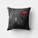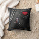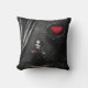 Gorgeously Gothic romance throw pillow (made in the USA) with a print of a cute little goth girl in beautiful gothic room with black damask wallpaper and drapes and an elegant romantic ornate hanging heart. A stylish and original gift - perfect for teenage girls and goths! From Gorgeously Gothic Designs.