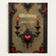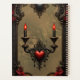 Gothic Romance: Hidden Passion. An ornate frame in the Gothic style, designed with fine black filigree, featuring delicate lines and intricate details reminiscent of ancient, ornate carvings. Embedded in the frame are bright red roses, their velvety blossoms creating a vibrant contrast to the dark filigree, underscoring the romantic mood. Heart-shaped ornaments adorn the corners and edges of the frame. Two black candles with red flames glow softly, lending the overall picture a warm, slightly sombre touch.