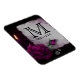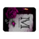 A personalised monogram flex magnet with a gothic look. An old greying parchment paper with hints of purple-red around the edges. A magenta rose in full bloom, a rosebud, a candle, and silver locket on a dark burgundy background creates a beautiful, dark and mysterious gothic design. Personalise with your monogram letter and name.