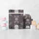 Elegant gothic Wrapping paper featuring bats, floral sugar skills, and blooming roses on a deep plum background. Perfect for spooky-chic gifts with a touch of dark romance!