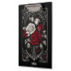 Red and white-grey roses in a vase, held in a grey, wrought-iron frame on a black background creates a lovely goth clipboard.