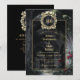 This black and gold gothic wedding invitation, featuring a gothic ruins with red roses scene, can be personalized with your monogram and wedding information in elegant typography and rsvp details and registry QR code on the reverse. Designed by Thisisnotme©