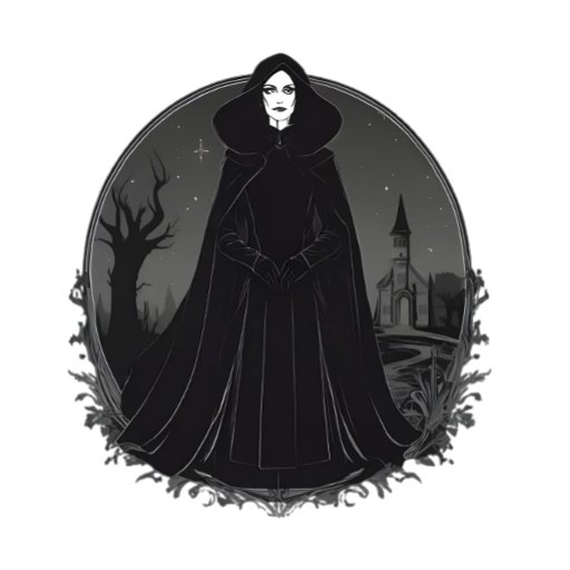 Explore the dark and mysterious side of Salem with this Gothic illustration of a Salem Witch. Cloaked in black and standing against a backdrop of a haunted church and twisted trees, this design captures the essence of gothic beauty and Salem's eerie history.Perfect for lovers of dark fantasy, witches, and mystical themes.