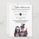 Imagine the scene: beneath the delicate, customisable text templates of your names and the details of your ceremony, lies an extraordinary vision. Behold the dashing skeletal couple, eternally intertwined in their unbreakable bond. The bride and groom, crafted with exquisite artistry, stand as eternal symbols of love that transcends the mortal coil.
