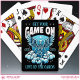These unique playing cards feature a dark, gothic-style illustration of a skeleton with wings resting on swirling clouds rendered in vibrant blue tones set against a dramatic black background with star accents for a moody aesthetic. Bold typography that says, “Get Your Game On” and “Live by the Cards,” creates an edgy vibe. Two customizable placeholders allow you to add your initials and the current year, making this deck uniquely yours or a thoughtful personalized gift. Perfect for poker nights, card collectors, gothic art lovers, and anyone who embraces dark, trendy design, these playing cards combine attitude, artistry, and personalization into one unforgettable deck.