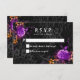 Gothic Skeleton Purple Floral Halloween Wedding RSVP Card