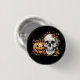 Festive Gothic Halloween button features a spooky skull and smiling jack-o’-lantern surrounded by fall leaves and flowers — the perfect mix of eerie and fun, creating a hauntingly stylish button. Perfect gift or for school events, Halloween party.