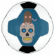 This awesome soccer ball features a creepy grey skull with glowing blue eyes and rotting yellow teeth. On top of the skull is a brown rat with pink ears, tail, paws and nose and blue eyes, The rat has an arched back ready to leap out at you. A great design for rat lovers and for Halloween.