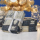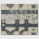 A gothic patchwork collage wrapping paper with skulls, bats, and blueprint-style details on a stitched denim texture. Monochrome palette adds a macabre, vintage feel. Perfect for gothic art lovers, Halloween décor, or unique spooky gifts.