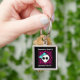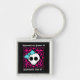 Super cute punk goth sweet 16 square premium key chain party favour with a black and fuchsia background and a skull with a blue bow on it. Add a name or other text to it.