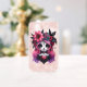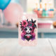 Sip in style with this striking can glass featuring a gothic skull character adorned with vibrant pink and purple hair, a floral crown, and a red heart motif. Inspired by Día de los Muertos and alternative fashion, this double-sided design blends dark whimsy with bold colour—perfect for iced coffee lovers, collectors, and fans of expressive drinkware.