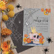 This fun Cottagecore Halloween design was created using my original mixed media art of a pale pink gothic skull with a faux gold crown surrounded by hand painted abstract watercolor florals in warm fall hues of yellows and oranges with a hint of navy blue. The haunting dark academia cottage vibe is complete with the addition of a spider web, spiders, and beautiful butterflies in black and white for that perfect touch of creepy!