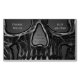 Skull head face close up Gothic grunge metallic grey black and white creative texture design. Tattoo artist professional magnetic business cards. Unique, cool, trendy, modern, scary vintage style art. Image copyright Marg Seregelyi Photography.