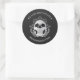 A skull and ornate border on a black background, and "We Dare You to Have a Wicked Good Time" or any wording you choose, in chic white lettering on these Halloween party round stickers available in 2 sizes and several styles. MATCHING items in our store.