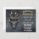 Gothic skull on grey and black background. Skull image and party details (all of which you can customise) in gold and white colour text.