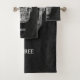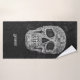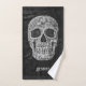 Skull head Gothic black and white grunge creative texture design. Custom printed name bathroom towel set. Unique, cool, trendy, modern, scary vintage style bath decor. Image copyright Marg Seregelyi Photography.