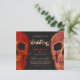 Gothic skull head budget Save The Date orange, black vintage style Halloween wedding invitation flat card invitation. Fun, cool, spooky, Hallowedding celebration. Till Death Do Us Part script. Image copyright Marg Seregelyi Photography.