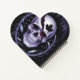 This heart-shaped notebook features a cracked skull with a maple leaf detail, surrounded by gothic feathers. A hauntingly unique writing companion.