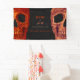 This wedding banner features Gothic skull heads which are orange and black vintage style Halloween theme. Fun, spooky, cool Hallowedding celebration. Till Death Do Us Part script. Image copyright Marg Seregelyi Photography.