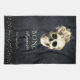 Decorate your kitchen this Halloween with our Gothic Glam Skull kitchen towel .Design features Gothic floral skull with faux gold confetti dots and "Bone Appetit" text on a black textured background. The skull is accented with a beautiful white roses. Personalise with your name.