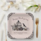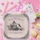 Celebrate Thanksgiving with this custom Gothic paper plate, hand-drawn in black ink. Featuring a Victorian birdcage surrounded by roses, pumpkins, skulls, and foliage, it showcases a beautiful palette of blues, plums, and creams, all against an elegant cream background. All text is editable—personalise with your family name and date for a unique, darkly elegant touch to your celebration.