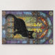 Gothic Stained Glass Window with Black Cat Jigsaw Puzzle