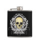 Gothic style black ace of spades with skull, hip flask