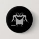 A pin on button in black with a cute and spooky Halloween creature on it.