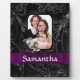 Easily personalise this alternative gothic tattoo style skull character and purple ribbon design by adding your own photo of your loved one and name or text to the templates to make a unique customised product. Visit the PHOTOGIFTZ STORE for matching products. The template photo image text and can easily be replaced with your own, Photographs of the same 4 x 3 dimension should replace the template image exactly. If your photo is of a different dimension you may have to use CUSTOMIZE to adjust the size, of the photo and text, by drag and drop.