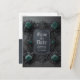 This gothic themed personalised wedding save the date announcement postcard features teal blue roses on a dark grey frame for your wedding announcement info. The back of the postcard has more of your wedding details for you to customise as well. Congrats on your engagement! Designed by Susan Coffey. Image generated with AI.