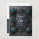 Gothic Teal Blue Roses on Grey Save the Date Announcement Postcard