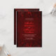 These gothic victorian wedding invitations in deep red are perfect for Halloween weddings, with an ornate, old-fashioned swirly frame, cracked with age, covered in spooky cobwebs, against a lightly textured, moody dark green background. The text is a combination of grunge script, classic easy to read block lettering, and Old English, mediaeval style type. Customise the back with your own reception and RSVP info to save the need for enclosure cards, or delete those fields to leave the back blank.