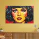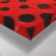 This striking digital artwork by Otis Porritt presents a vibrant, close-up portrait of a goth woman. Her intense blue eyes gaze directly forward, framed by dark, textured hair with electric blue highlights. The face, rendered with a painterly impasto effect, features a palette of pinks, oranges, and yellows, punctuated by numerous small red dots resembling freckles. Bold red lips and dramatic dark eyeshadow enhance her captivating presence. A dynamic red background, patterned with uniform black Ben-Day dots, amplifies the work's pop art aesthetic, creating a powerful visual impact.