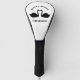 This awesome golf driver cover features a digital art image of a pair of beautiful black swans facing each other and looking like they are kissing. They are black with red eyes and beaks. There is custom text so you can include the names of the happy couple and a message.