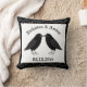 This awesome double sided Wedding pillow features a digital art image of a pair of beautiful black ravens facing each other and looking like they are kissing. They are black with beady eyes and grey beaks and feet.