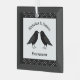 There are also white stars on a black background above and below the birds. There is custom text so you can include the names of the happy couple and a message.