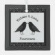 This beautiful glass Christmas ornament for newlyweds features a digital art image of a pair of beautiful black ravens facing each other and looking like they are kissing. They are black with beady eyes and grey beaks and feet.