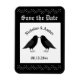 This awesome Save the Date Wedding magnet features a digital art image of a pair of beautiful black ravens facing each other and looking like they are kissing. They are black with beady eyes and grey beaks and feet.