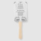 The fan features a two vintage skulls on one side. The other side features a clear and easy-to-read layout that outlines the order of events for your ceremony or reception. The fan is made of durable paper and features a wooden handle for a comfortable grip.