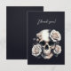 A Gothic design of a white skull with a crown of Roses on a black background.