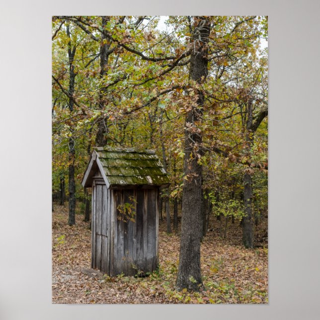 A wooden outhouse at Pioneer Village at Harry S Truman Dam Visitor Centre in Warsaw, Missouri, United States.